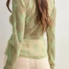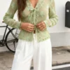 Womens Tie-up Front Tops Long Sleeve V Neck Slim Fit Sheer Lace Shirts Spring Fall Blouses
